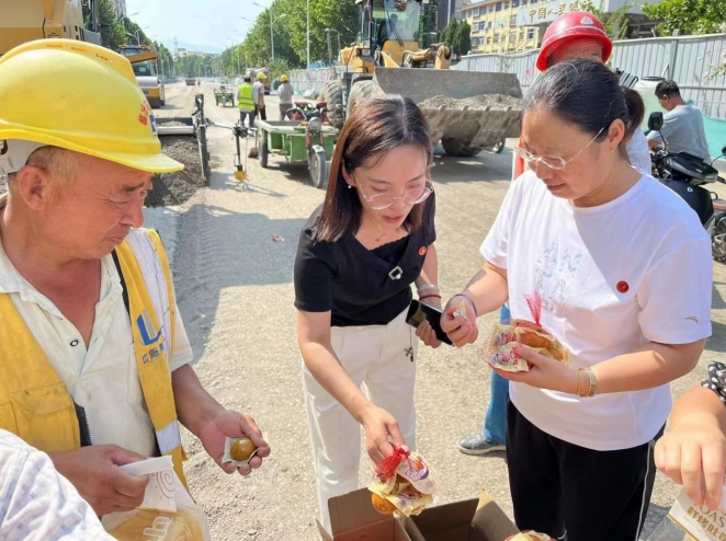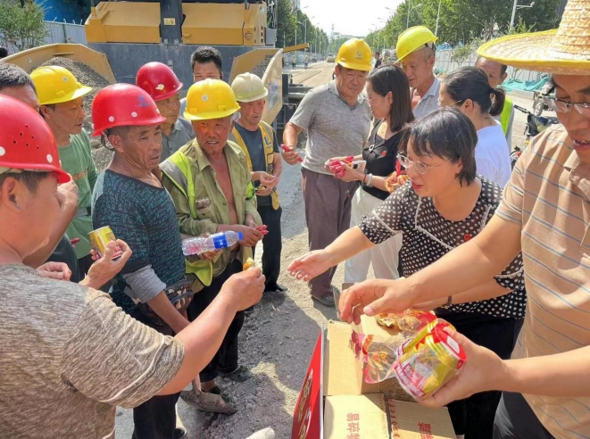 走进工地现场,为一线职工发放面包、香肠、饮料等,了解项目部施工进展及项目人员生产生活、劳动保护、防暑降温措施等情况,切实为职工创造一个安全、健康的工作环境。