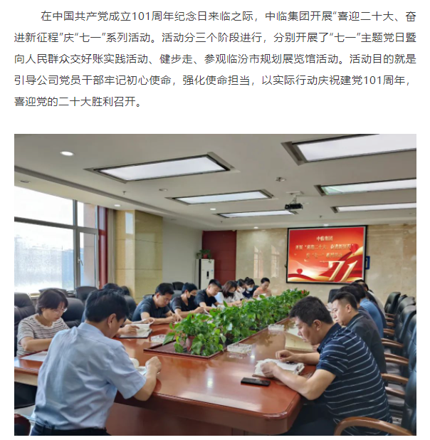 中临集团开展“喜迎二十大、奋进新征程”庆“七一”系列活动